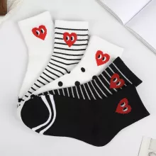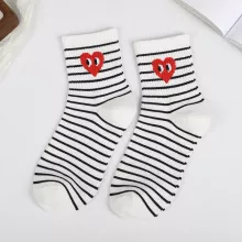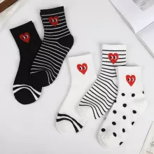 Step up your style game with these trendy Black and White Striped Polka Dot Socks, a perfect mix of casual charm and bold fashion. With their eye-catching pattern and comfortable fit, these socks are sure to make a statement wherever you go. Inspired by the latest Korean fashion trends, these socks combine the timeless appeal of black and white stripes with playful polka dots, offering a fresh twist on everyday footwear. Whether you’re dressing up for a casual outing or just relaxing at home, these socks are an easy way to add some fun to your wardrobe.