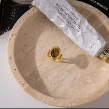 Add this Trendy Oval Tiger Eye Hammered Gold Ring to your collection and elevate your accessory game. Its unique design, luxurious finish, and versatile style make it a must-have piece for women who love chic, fashionable jewelry. Treat yourself or someone special today and enjoy a ring that is as timeless as it is trendy.
