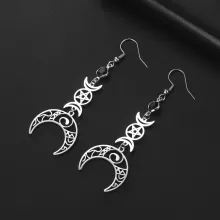 Unlock your inner goddess with these stunning Triple Moon Pentagram Earrings, designed to embody the timeless beauty of the cosmos and the mystic world of Wicca. Crafted from durable 304L stainless steel, these earrings are a bold statement of strength and elegance. Their gothic and bohemian charm is perfect for anyone drawn to mystical, celestial aesthetics.
