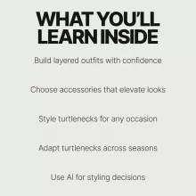 Unlike generic fashion guides, this ebook combines classic styling principles with modern tools, including AI-powered styling and shopping tips. You’re not just learning trends—you’re learning repeatable systems for how to style a turtleneck with layers and accessories in a way that fits your lifestyle, body type, and wardrobe.