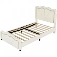 Elevate your sleeping space with this beautiful Twin Size Platform Bed, featuring a sleek design, soft upholstery, and convenient LED light strips. Designed to add a touch of modern flair to your child’s room or any cozy space, this bed seamlessly blends style, comfort, and practicality. Whether you’re setting up a new bedroom or upgrading your current setup, this bed is perfect for creating a warm, inviting atmosphere that everyone will love.