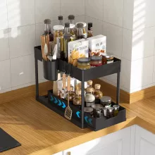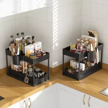Discover the ultimate solution to your cluttered cabinets and messy countertops with the Two Tier Under Sink Sliding Cabinet Organizer. Designed to fit perfectly under sinks in kitchens, bathrooms, and beyond, this organizer will revolutionize the way you store and access your essentials. Whether you need a space-saving solution for cleaning supplies, toiletries, or office supplies, this organizer has you covered.