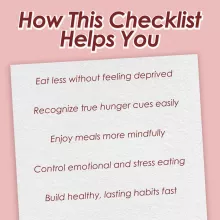 This checklist has been a great tool for me! It's not about dieting, it's about mindful eating. The hunger rating system is so simple yet effective.