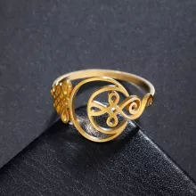 Embrace the journey of life with grace and intention with this stunning Unalome Crescent Moon Ring. Designed for women who cherish spirituality, mindfulness, and personal growth, this symbolic ring speaks volumes without saying a word. Crafted from durable stainless steel and finished with an elegant 18k gold plating, it combines spiritual symbolism with vintage-inspired style. The Unalome symbol, representing the path to enlightenment, beautifully intertwines with a crescent moon – a timeless icon of femininity, intuition, and change.