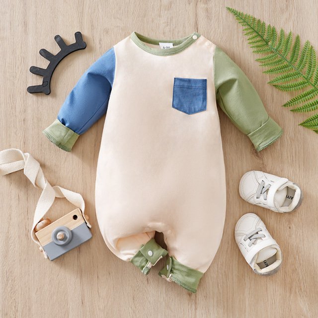 Unisex Baby Jumpsuit with Blue-Green Stitching