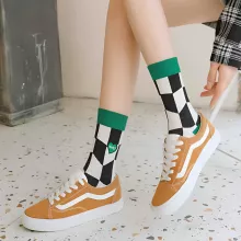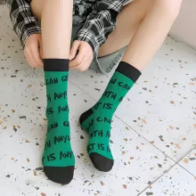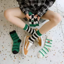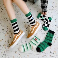 Made from a soft cotton blend, these socks feel as good as they look. The non-woven construction and breathable material keep your feet cool in summer, cozy in winter, and perfectly comfortable during those in-between spring and autumn days. The classic green stripes are balanced with a bold check and letter design, adding texture and personality without being over the top.