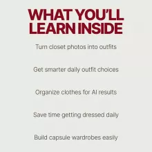 Unlike generic fashion ebooks, this guide focuses on using your actual wardrobe. It blends real AI tools, clear prompts, and practical workflows so you can get realistic, wearable outfits—fast.
