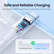 Unlike ordinary cables, this one is built to last. The extend tail design prevents the joint from rupturing, while the sturdy connector has been tested to withstand 10,000+ plug and unplug cycles. The thickened PVC jacket adds flexibility and toughness, ensuring the cable stays reliable even with daily heavy use. Plus, with built-in safety features like a 56kΩ resistor and multi-shielding protection, your devices stay safe from overheating and unstable current.
