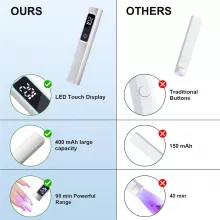 Featuring a sensitive LED touch screen and touch-activated switch, this mini nail dryer brings ease to every manicure. No buttons, no hassle—just touch and go. It’s also packed with a 400mAh rechargeable battery, offering up to 90 minutes of drying time on a single charge. At just 4.7 inches long and under 0.7 inches wide, it’s incredibly portable and perfect for travel, business trips, or last-minute touch-ups anywhere.