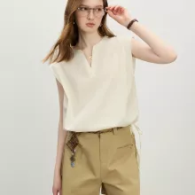 This sleeveless V-neck blouse shines in professional settings, casual outings, and relaxed weekends. It’s especially suited for spring and summer thanks to its thin, breathable fabric. Wear it with tailored pants for a polished office look or pair it with denim shorts for an easygoing day out. The versatility of this piece makes it a wardrobe essential for women who appreciate both fashion and function.