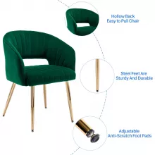 - Durable and Stable: Built with a sturdy wooden frame and durable gold metal legs, this chair is designed to last. It can support up to 280 lbs and is equipped with foot mats to protect your floors from scratches.