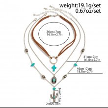 Vintage Blue Natural Stone Cross Pendant Layered Necklace Set