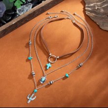 Bring timeless beauty and personal expression to your look with this Vintage Blue Natural Stone Cross Pendant Layered Necklace Set. Featuring three unique necklaces in one set, this piece combines bohemian charm with a modern twist. Whether you’re dressing up for a special occasion or adding a stylish accent to your everyday attire, this layered necklace is your perfect accessory.