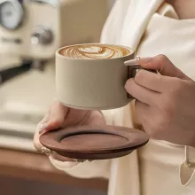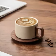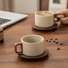 Experience the perfect blend of modern design and vintage charm with this Vintage Wooden Handle Ceramic Coffee Cup with Saucer. Crafted with care, this 8.5 oz (250 ml) mug brings sophistication and warmth to your daily coffee ritual. Its smooth ceramic body paired with a natural wooden handle offers a delightful balance between comfort and style, making every cup of coffee or tea a truly special moment.