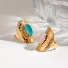 This statement ring is designed to stand out. The open band design ensures it comfortably fits most finger sizes while giving a bold, sculptural look. The chunky structure and high-polish gold finish make it a standout accessory, while the semi-precious stones create a vintage, classic touch. Plus, it’s completely waterproof and free from harmful chemicals like nickel, lead, or cadmium—making it safe and stylish for everyday wear.