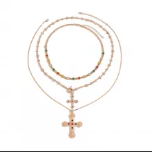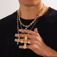 This necklace features a blend of materials, including high-quality metal alloy and imitation pearls, creating a contrast between softness and strength. The oversized cross pendant is encrusted with rhinestones for a glamorous touch, while the chunky link chain adds an urban edge. Choose from gold or silver tones to match your unique vibe and wardrobe.