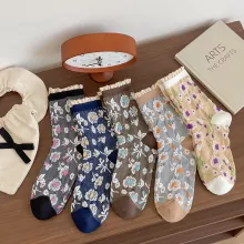 These socks are more than just functional—they are a fashion statement. Their unique embossed floral design and ruffled trim offer an ethnic and vintage vibe that can instantly elevate casual looks or add a creative twist to more classic styles. Perfect for daily wear during autumn and winter, they bring a fresh and charming detail to your wardrobe. Whether you’re dressing for a cozy day at home, a stroll in the city, or a meet-up with friends, these socks offer both comfort and style in one beautiful package.