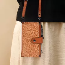 This bag stands out for its perfect blend of vintage charm and modern utility. The floral pattern adds a delicate, feminine touch, while the genuine leather ensures it ages beautifully over time. It’s ideal for women who want to carry their essentials stylishly without sacrificing convenience. Whether for casual days out or special occasions, this multifunctional wallet bag keeps your phone, cards, and notes neatly stored and easy to access.