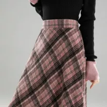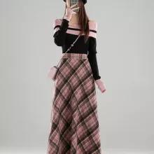 Looking for a way to refresh your wardrobe? This plaid pink A-line skirt is more than just a trend – it’s a statement of effortless femininity and confidence.