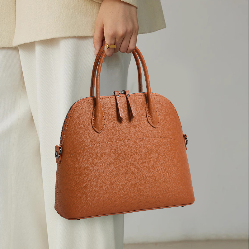 Crafted from high-end genuine cowhide leather, it boasts a luxurious textured surface that speaks volumes about quality and class. Its structured half-moon shape not only looks fashionable but also gives you enough room to carry all your daily essentials – from your phone and wallet to your lipstick and keys. The sturdy zipper and hasp closure ensure your items stay secure while you move through your day with confidence.