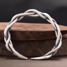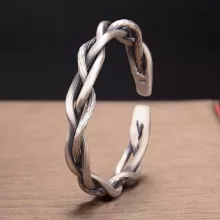 Vintage Silver Twisted Rope Bracelet – Adjustable Punk Rock Cuff