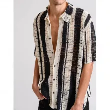 Introducing the Vintage Striped Knit Men’s Shirt, your go-to option for casual summer style. This breathable, hollow-out knit shirt combines vintage charm with modern comfort, making it perfect for warm days when you want to look effortlessly stylish. Featuring a classic striped design and short sleeves, this shirt offers a laid-back vibe while keeping you cool all season long. The button-up lapel adds a touch of sophistication, making it easy to transition from day to night.