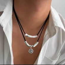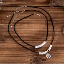 Turn heads and express your individuality with this Vintage Velvet Choker Necklace Set, designed for bold fashion lovers who appreciate a touch of cultural charm. This 2-piece set features a sleek black Korean velvet choker paired with intricately detailed silver-colored tube and coin pendants, creating a stunning balance between ethnic inspiration and modern trendiness. Whether you’re styling for a music festival, a casual brunch, or a night out, this necklace set makes a confident statement.