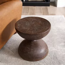The craftsmanship on this vintage-style hourglass side-table is truly exceptional. Its sleek round shape fits seamlessly into various settings in our home - from the bedroom to the reading nook. What really caught our eye was how beautifully the natural wood finish highlighted its organic beauty.