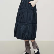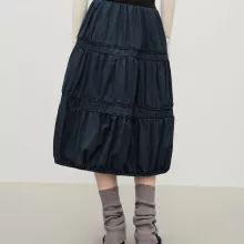 What truly sets this skirt apart is its thoughtful patchwork design and soft pleated structure. The lace-up drawstring detail adds visual interest while letting you adjust the fit for pure comfort. Made from 100% cotton knit fabric, it is breathable yet cozy enough for cooler weather. The slight stretch ensures you can move easily throughout the day without feeling restricted.