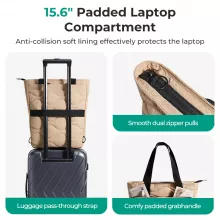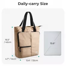 The smart design blends the structure of a backpack with the elegance of a tote bag. Made from durable nylon with a polyester lining, it resists light rain, splashes, and everyday wear. The padded laptop compartment safely holds devices up to 15.6 inches, while multiple interior pockets keep smaller items secure and clutter-free.