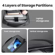 This laptop backpack features 4 layers of storage partitions, allowing you to neatly organize your belongings. The dedicated laptop compartment can hold up to a 15.6-inch laptop, while additional sections provide room for tablets, notebooks, gaming devices, and accessories.