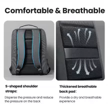 Say goodbye to back and shoulder strain! The backpack is designed with S-shaped shoulder straps that evenly distribute weight, reducing pressure on your shoulders. The thickened, breathable back padding provides all-day comfort, while the durable nylon handle ensures a firm grip when carrying by hand.
