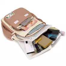 What sets this backpack apart is its smart balance of style and function. The waterproof nylon helps protect your belongings from light rain and spills, while the patchwork design adds a unique, fashionable touch that stands out without being loud. The arcuate shoulder strap system is shaped to sit comfortably on your shoulders, reducing pressure during long days. It’s a true unisex design, perfect for students, professionals, and travelers alike.