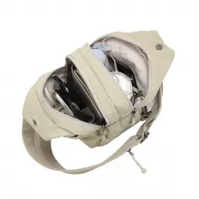 This bag is designed with a softback structure and an arcuate shoulder strap for comfortable all-day wear. You can use it as a backpack, crossbody bag, chest pack, or even a sporty shoulder bag. Its compact but roomy interior fits your daily must-haves, including a tablet up to 10 inches, small laptop, wallet, books, phone, and more.