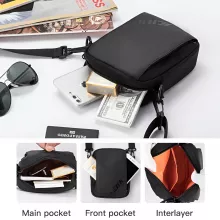 Its interior includes a phone pocket, zipper pocket, slot pocket, and a full compartment—perfect for keeping your belongings organized. The exterior silt pocket adds extra convenience for items you need quickly. Measuring approximately 5.9 × 2.1 × 7.5 inches and weighing only 170g, it’s compact yet roomy enough to hold a 7-inch phone, passport, car key, cigarettes, and other everyday essentials.