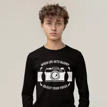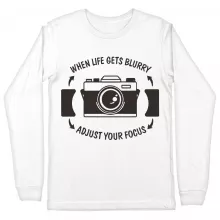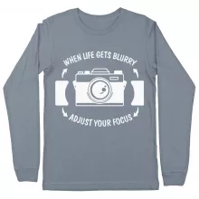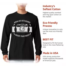 When Life Gets Blurry Adjust Your Focus Long Sleeve T-Shirt is proudly made with 7x less water than average manufacturers, in recycle-friendly facilities that also guarantee zero sweatshop conditions. Camera T-Shirt is designed and printed in California.