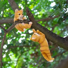 Bring a touch of playful charm to your garden, balcony, or courtyard with this delightful resin cat pendant. Expertly handcrafted, this realistic simulation of a tree climbing cat captures the curiosity and grace of a kitten in motion. Its finely detailed features and lifelike pose make it a captivating addition to any outdoor or indoor space.