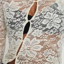 Get ready to command attention with the ultimate blend of sophistication and allure. Our White Lace Mesh Cut Out Crop Top is designed for the woman who loves to make a statement. With delicate see-through lace detailing and a sultry bodycon fit, this long sleeve crop top brings just the right amount of boldness to your wardrobe. Whether you’re dancing the night away at a club or turning casual brunch into a style moment, this top will have all eyes on you.