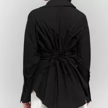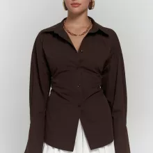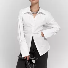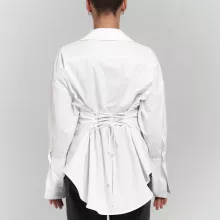 Made from soft, breathable cotton, this shirt features a solid white tone that makes it easy to pair with your favorite pants, skirts, or jeans. The turn-down collar and single-breasted closure lend a clean, polished finish. What truly sets it apart is the waist-cinching tie-up sash that creates a flattering hourglass shape, giving you a slim, structured fit without compromising on comfort. Long sleeves with a regular cuff style offer versatility, while the shoulder cinch detail adds a subtle fashion-forward touch.