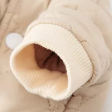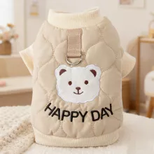 Made from premium Chunya textile paired with shake fleece, this jacket feels gentle on the skin and keeps your pet protected from cold winds. The charming bear print adds a cute, fashionable touch that stands out. A built-in traction buckle allows you to attach a leash instantly, making winter travel easier and safer. Its lightweight structure ensures your pet moves freely while staying warm all day.