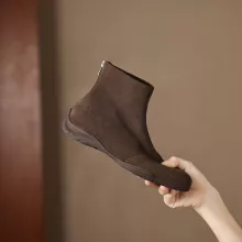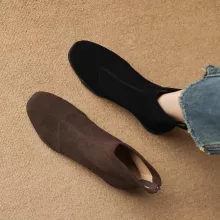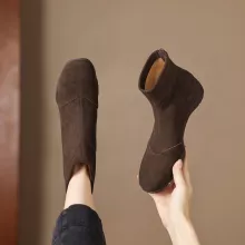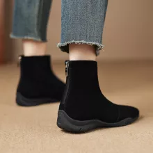 These women’s boots are not only a stylish addition to your wardrobe but also practical for everyday wear. Made with premium cow suede leather, they offer a rich, luxurious texture that stands up to the elements. The soft fleece lining ensures your feet stay warm and cozy, even on the coldest days. The zip closure makes them easy to slip on and off, while the rubber sole provides superior traction, so you can walk with confidence, rain or shine.