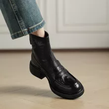 The chunky heel design provides added height while maintaining stability and comfort, making these boots suitable for long days on your feet. The rubber outsole ensures a firm grip, reducing the risk of slipping. Plus, the round toe shape provides ample space for your toes, ensuring comfort throughout the day.