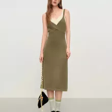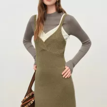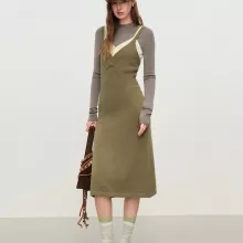 • Sleeveless knit vest and strappy slip dress two-piece design