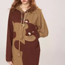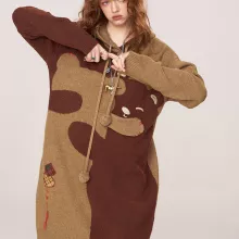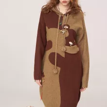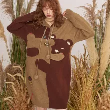This dress combines warmth, charm, and sophistication in a way few winter pieces can. The unique cartoon-inspired bear design sets it apart from ordinary knitwear, giving you a look that stands out without trying too hard. It’s best used during autumn and winter when you want something cozy yet stylish—ideal for layering with tights, boots, or a favorite coat. Every detail, from the tatting-knit texture to the feminine shape, works together to create a piece you’ll reach for all season long.