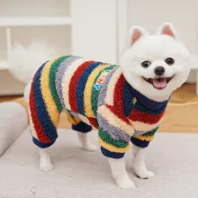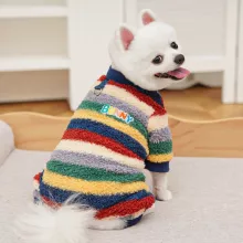 Winter Plush Rainbow Striped Pet Jumpsuit
