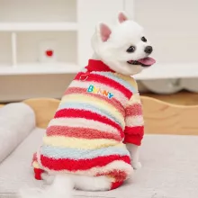 Crafted from gentle polyester plush, this jumpsuit feels velvety soft against your pet’s coat. The natural, breathable fit ensures your pet stays warm without feeling stuffy, while the smooth interior prevents tugging or pulling on hair. Its lightweight construction makes it ideal for daily wear during the colder months, whether indoors or outdoors. The rainbow-striped design and fun letter print add a fashionable touch that makes your pet stand out in the cutest way.