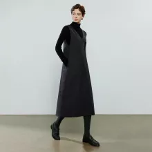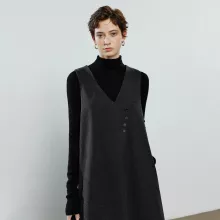 Featuring a timeless black-gray palette, this dress pairs beautifully with turtlenecks, blouses, or fitted long-sleeve tops, allowing you to layer with ease throughout winter. The unique diagonal placket and button detailing add a subtle retro touch, giving the dress character while keeping the overall style clean and refined. With its sleeveless design and easy pullover closure, it transitions seamlessly between indoor and outdoor wear—perfect for chilly days when you need a versatile piece to style up or down.