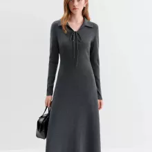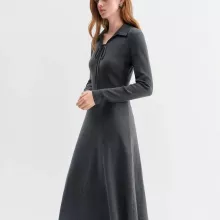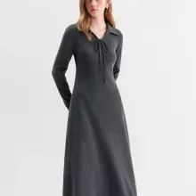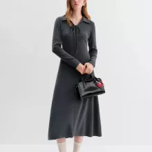 What truly sets this dress apart is the balance between comfort and elegance. The knit texture adds warmth and softness, while the tailored collar and tie waist bring structure and refinement. The empire waistline visually elongates your figure, giving a taller and more defined look. It is stylish without being overdone and simple without being boring.