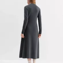 The fabric is a carefully balanced blend of polyester, acrylic, nylon, and sheep wool. This gives the dress a soft, cozy feel with slight stretch, making it comfortable enough for all-day wear in colder seasons. The smooth hemline flows gently as you move, creating a graceful look that flatters all body types.