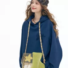 This cozy pullover is crafted from a medium-weight cotton and polyester knit, offering just the right amount of warmth for winter without feeling heavy. The drawstring hood adds extra protection on chilly days, while the twist-knot details and patchwork accents elevate its look with a unique, handcrafted feel. The loose fit allows for easy layering over tees or thermals, and the full-length sleeves keep you comfortably covered. Designed as a pullover with no full opening, it keeps heat in and cold air out effortlessly.